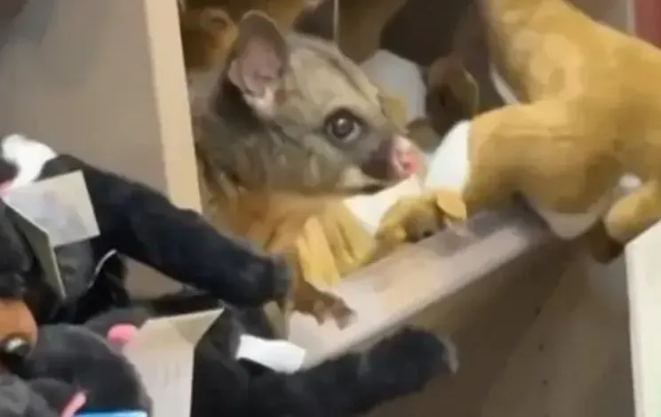 У крамниці duty-free аеропорту в австралійському місті Хобарт «продавали» живого опосума. Тварина сиділа спокійнесенько між плюшевими тваринами, але все ж була викрита.