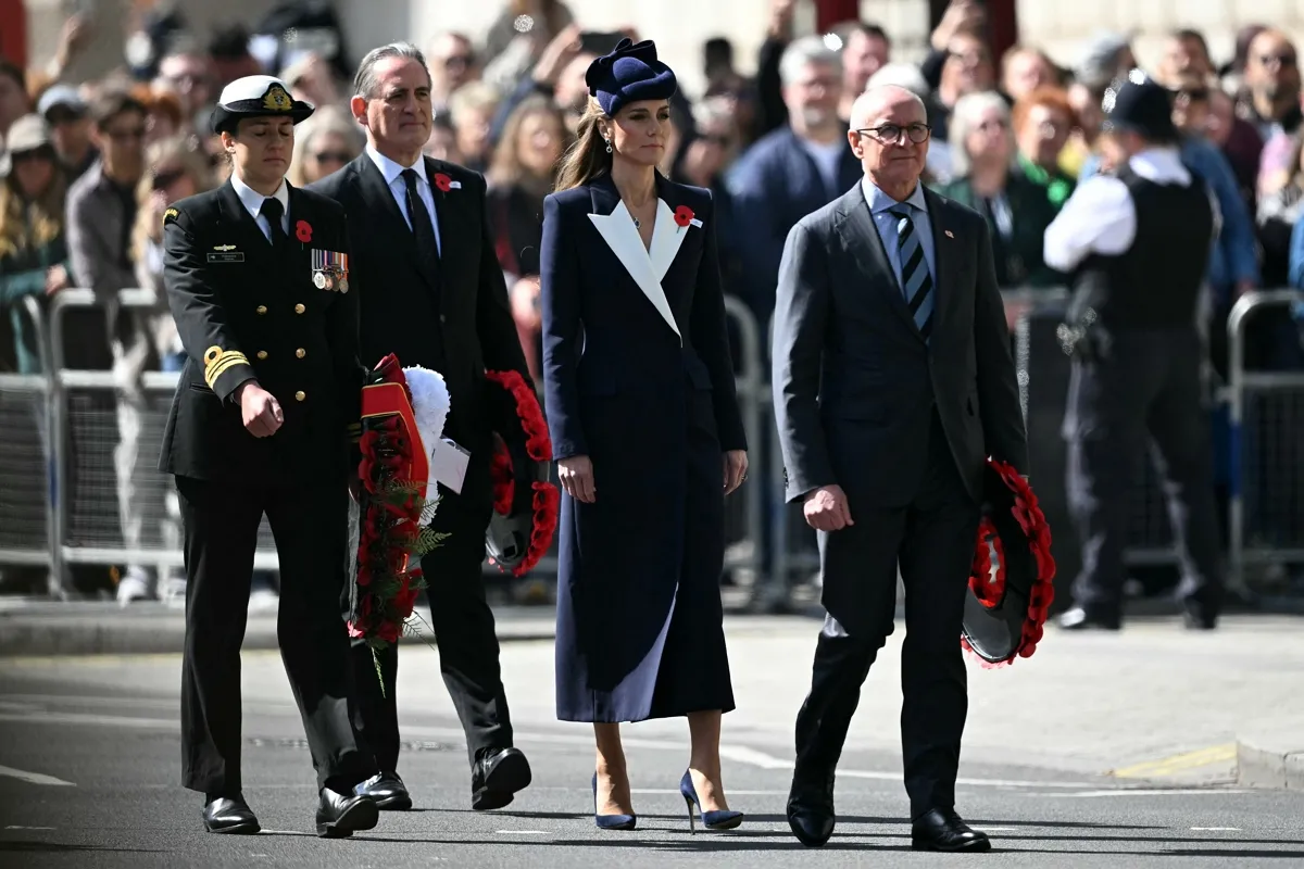 25-го квітня принцеса Вельська відвідала захід пам'яті австралійських та новозеландських військових, продемонструвавши монохромний темно-синій аутфіт, який вже встигли охрестити взірцем класичної елегантності, пише People.